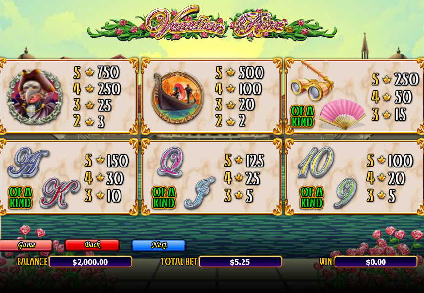 Игровой автомат Venetian Rose способен перенести каждого пользователя во времена средневековой Венеции. Разработчики взяли в качестве основной тематики стилистику города тех времен и уделил особое внимание венецианскому карнавалу. На экране вам встретятся шикарные дамы, гондолы, люди в масках и многое другое. Помимо яркого и оригинального оформления вас также ждут большие выплаты. К тому же, процент отдачи здесь действительно высокий, так что вы без проблем сможете получить хорошие выигрыши в проверенных казино на деньги за короткий промежуток времени.